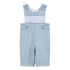 Dress your little guy in timeless style with our Light Blue Pinstripe Brown Smocked Jon Jons. These classic overalls feature charming smocking on the chest, accented with rich blue detailing. The adjustable shoulder buttons ensure a perfect fit, making these overalls both stylish and practical for any occasion.