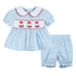The Light Blue Santa Smocked Dress and Bloomers set is a delightful choice for celebrating the holidays with your little one. Featuring intricate smocking with embroidered Santas, a sweet peter pan collar, and back buttons for easy dressing, this outfit combines festive charm with practicality. Designed for infants, babies, and toddlers, it ensures a cozy fit, perfect for holiday photos, family gatherings, and cherished seasonal moments.