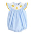 Light Blue Striped Lemons Smocked Ruffle Romper
