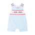 Light Blue USA Flag Smocked Shortalls