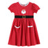 Make her holiday season extra jolly with our adorable Santa Pocket Dress! This festive red dress features a cheerful Santa applique on the chest, playful puff sleeves, and a sweet gathered skirt. A black waist belt with a gold buckle detail adds a fun, Santa-inspired touch and ties into a charming bow at the back. The dress also includes two front pockets with white trim, perfect for holding little treasures. Finished with a button-up back for easy dressing, this piece is perfect for Christmas parties, photos, and festive fun!