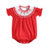 Make the holidays extra festive with the Red Santa Smocked Ruffle Romper. Made from 100% cotton, this adorable romper features a smocked neckline with embroidered Santa details, sweet ruffle accents, and convenient snaps for easy dressing and diaper changes.